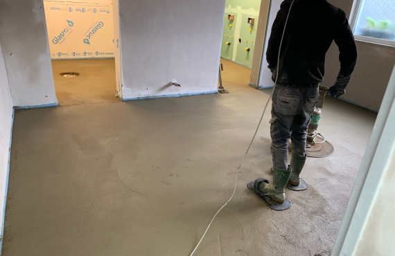 Auch im alten Kelleraum liegt nun Estrich - die Stufe ist also Geschichte.