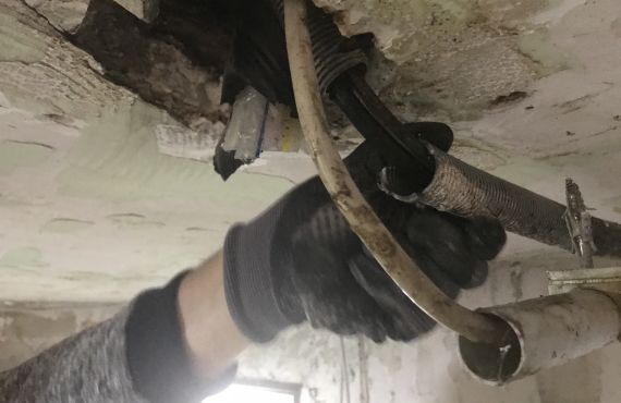 Für die Stromversorgung der Theke wurden eigene Leitungen verlegt. Nun ist auch die Installation eines Durchlauferhitzers möglich (5-adrig mit 6 mm² Kabelquerschnitt).