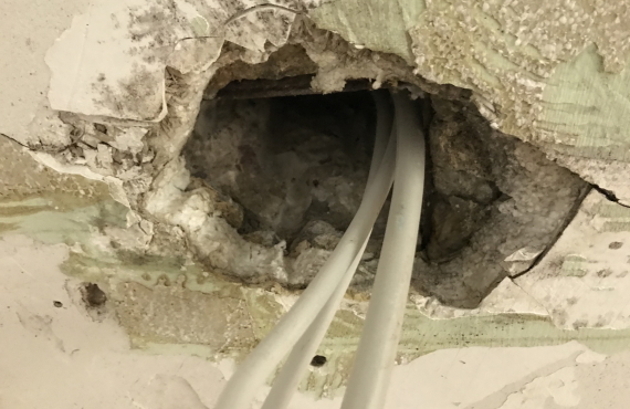 In der Damenumkleide tropfte es aus der Decken-Öffnung - aus Richtung Theke.