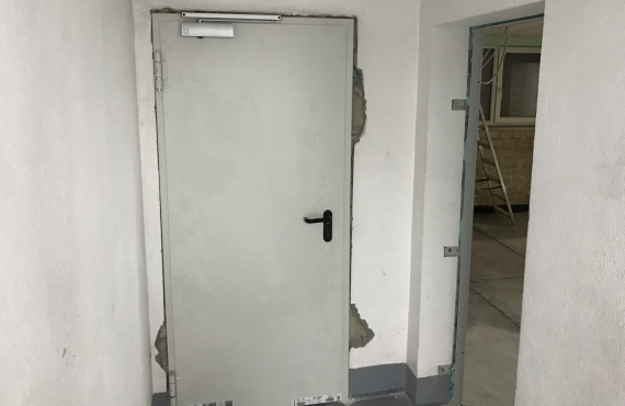Ende Oktober wurden die ersten Türen montiert. Wir haben uns dazu entschlossen, die Tür zum Heizungsraum ebenfalls zu erneuern. Dies war aus Brandschutzgründen sicherlich sinnvoll.