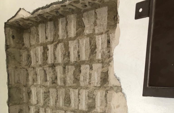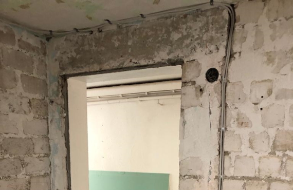 Hinter der Eingangstür soll ein neuer Elektro-Verteilerschrank entstehen. Hierzu musste zunächst einmal der notwendige Platz geschaffen werden.