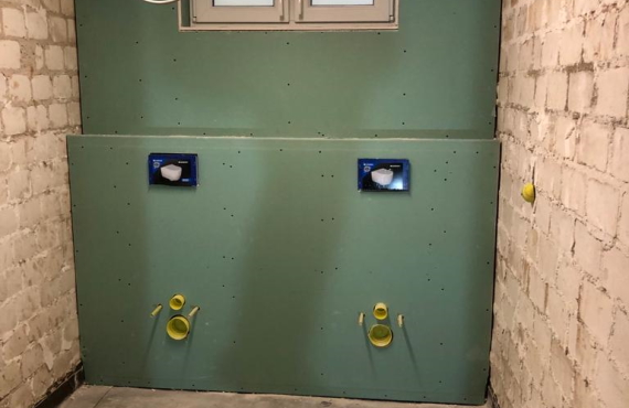In der Damentoilette wurde mit dem Trockenbau begonnen.