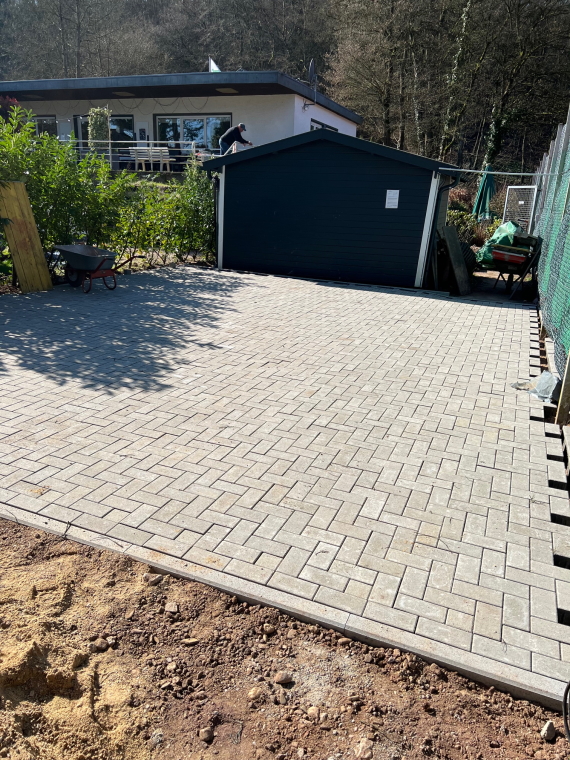 Hinter dem Gartenhaus ist jetzt genug Platz für die Halle.