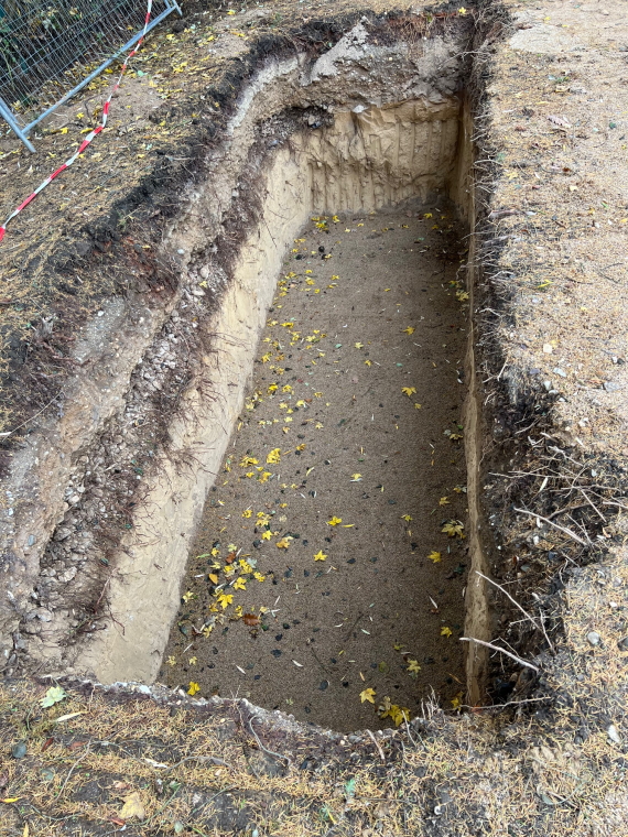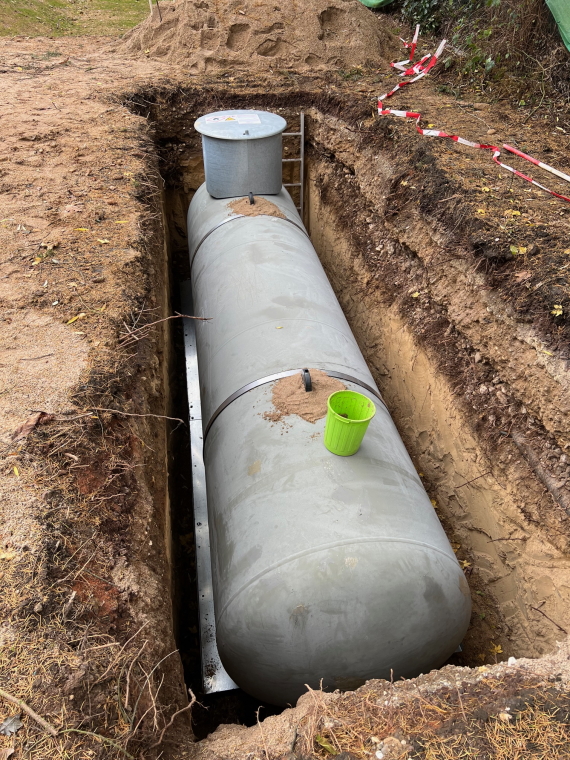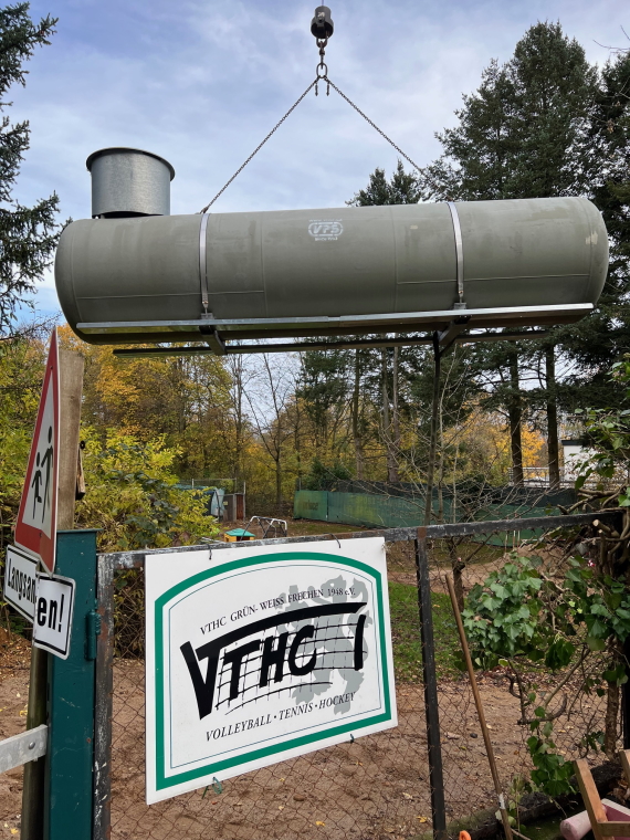Die Traglufthalle wird mit Flüssiggas betrieben. Der hierfür benötigte Tank kommt unter die Erde.